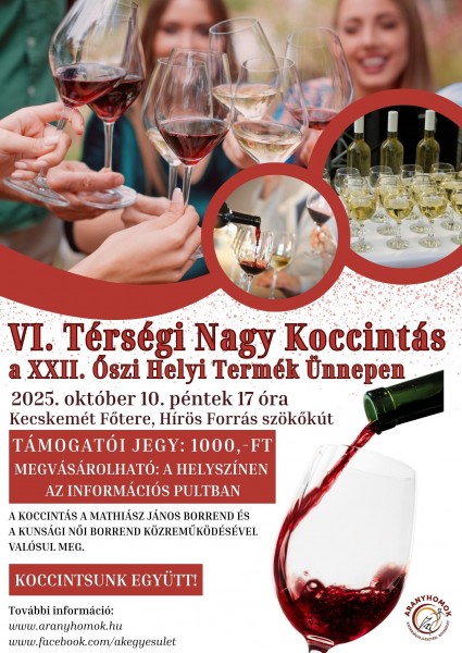 Kecskemét főtere október 10–12. között ismét életre kelt a térségi ízek, hagyományok és közösségi élmények ünnepével. Az Aranyhomok Kistérségfejlesztési Egyesület 22. alkalommal rendezte meg az Őszi Helyi Termék Ünnepet és Aranyhomok Portéka Vásárt a Hírös Forrás szökőkútnál.